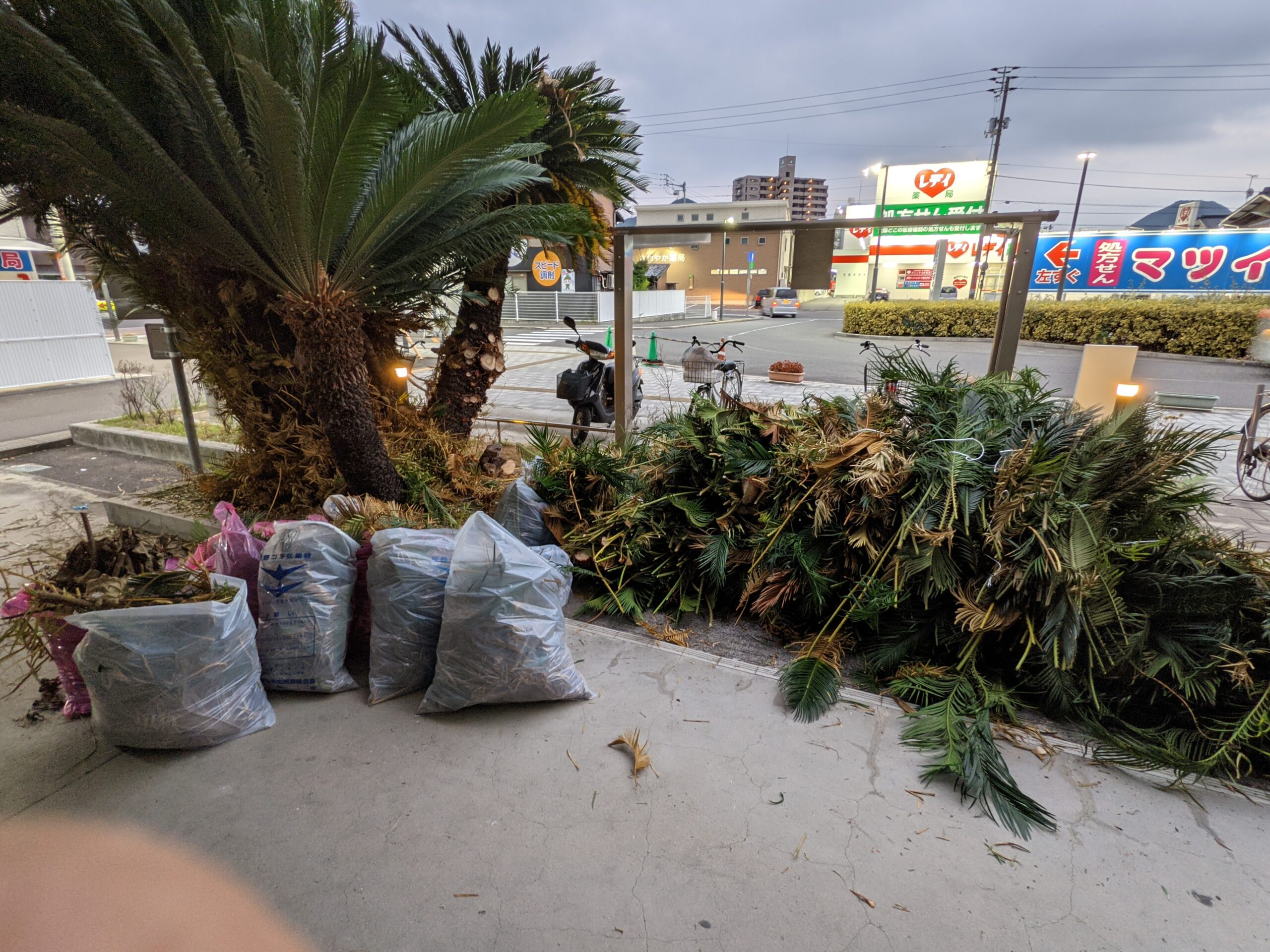 地域の方々と旧坂出中央小学校の体育館入口の清掃