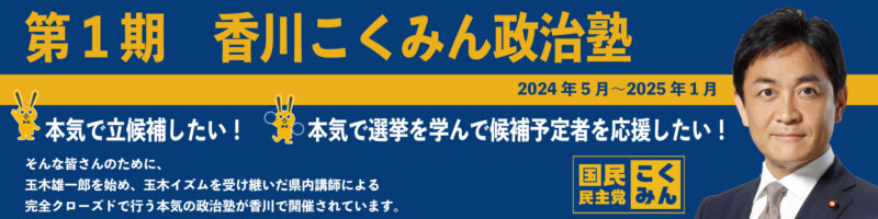 国民民主党香川県連は、「本気で立候補したい!」「本気で選挙を学んで候補予定者を応援したい!」と熱い想いを持っている方に向けた、政治塾を開校します。